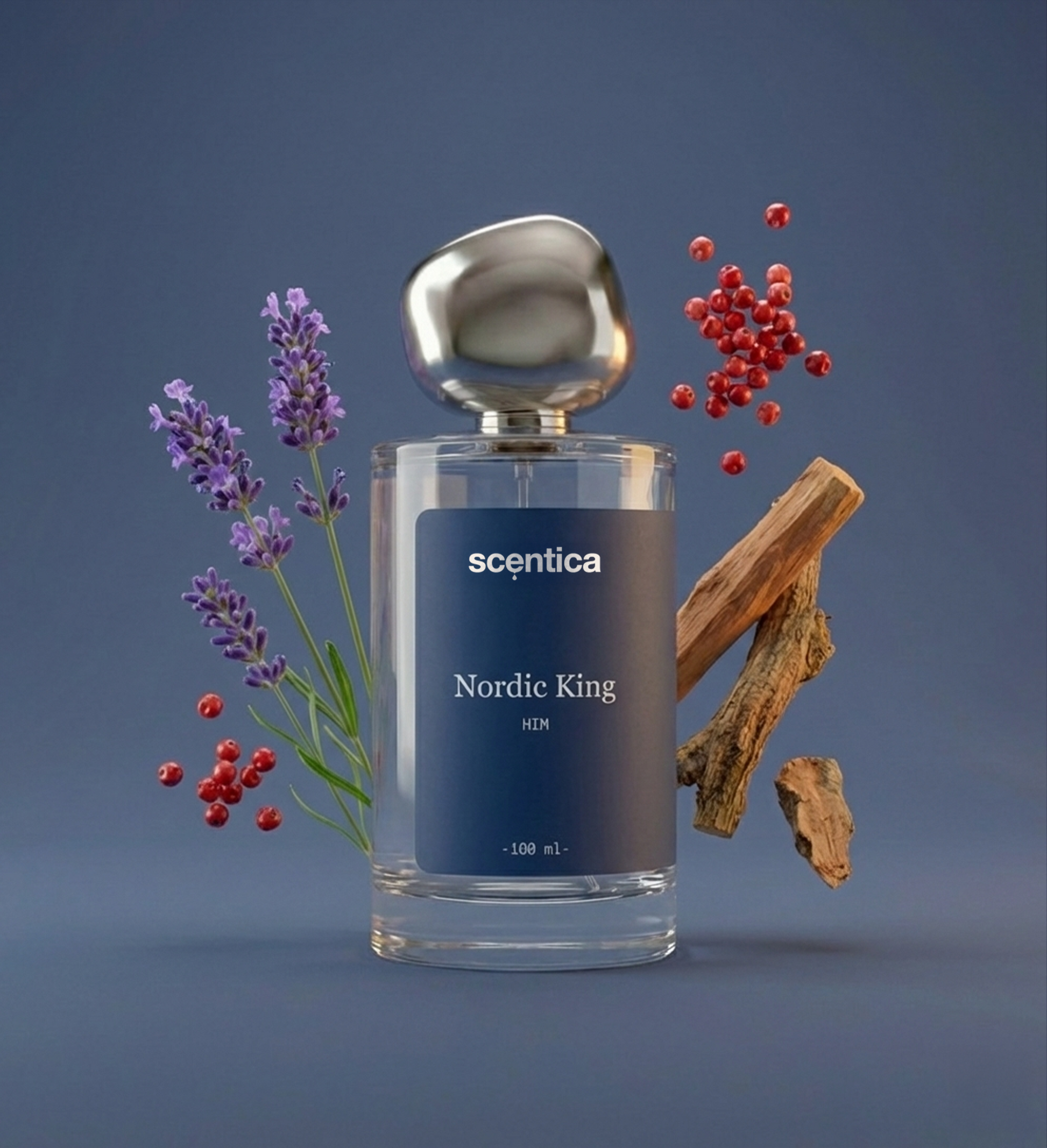 Nordic King es una fragancia poderosa y audaz, creada para el espíritu aventurero que desafía los límites. Su apertura fresca y especiada combina la energía del limón y la bergamota con el toque vibrante de la pimienta rosa. En el corazón, la lavanda y el geranio aportan un equilibrio aromático y sofisticado, mientras que su fondo de sándalo, vetiver y pachulí deja una estela amaderada intensa y duradera.