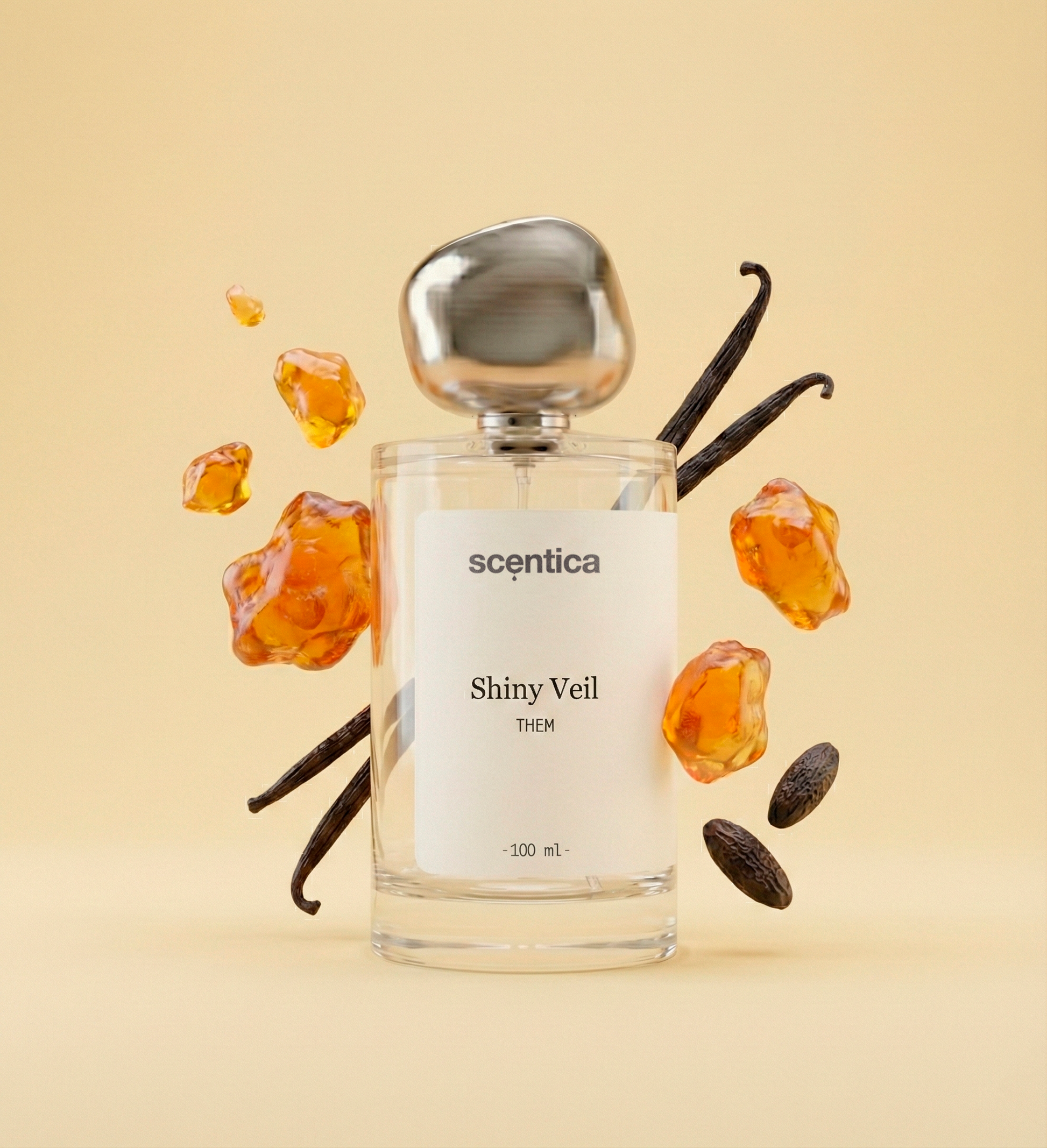 Shiny Veil es una fragancia ambarada, envolvente y lujosa. Sus notas cálidas de resinas, vainilla y ámbar crean un aroma profundo, elegante y sensual, ideal para la noche o momentos especiales.